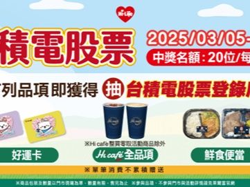存股族、彩券迷注意!購買福袋、刮刮樂不稀奇,想成為「護國神山」台積電的小股東,必須手刀衝一波萊爾富超商試手氣!萊爾富近期推出超狂會員活動,把握3/5~4/29期間以Hi-Life VIP APP會員身分購買萊爾富「好運卡」、吃鮮食便當或喝杯咖啡,就能參加抽獎,有機會獲得台積電股票100股,成為今年你與台積電最近的距離!