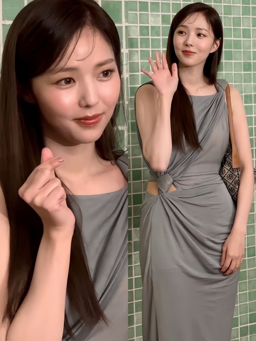 蔡秀彬身穿一襲TORY BURCH 2025春夏系列的灰色綁結洋裝套裝華麗亮相,不規則的打結設計勾勒出秀彬曼妙的好身材。而這套優雅知性又不帶有性感的造型讓秀彬字也相當滿意。她也透露材質相當輕盈柔軟,穿上身的感覺十分舒適。而她肩背的T Monogram氣球包也相當搶眼,滿版的老花圖案搭配大容量包袋設計,相信會成為今年春夏熱賣的ICON手袋。