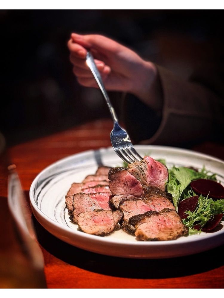 敢吃羊的話非常推薦嚐嚐看 rén 的羊肉。烘烤過的小羔羊肉質軟嫩,沾上濃郁香麻的川味口水醬相當開胃;羊骨則以酥炸方式呈現,豐富脂香與孜然獨特香氣相輔相成,一羊二吃的呈現方式相當有趣,創意與美味兼具。