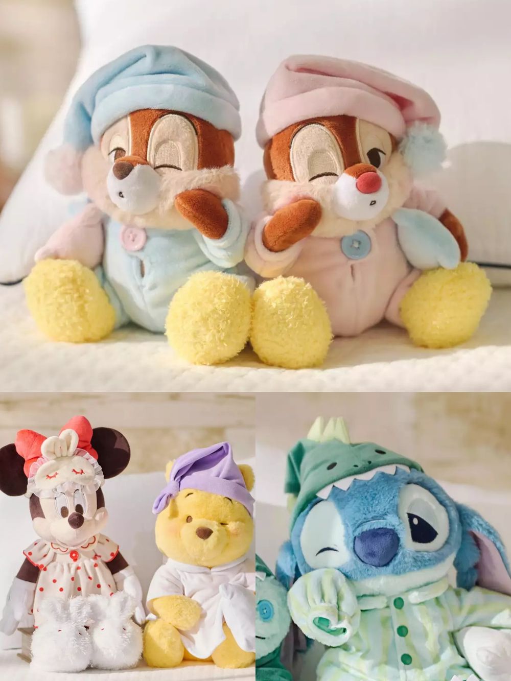這回日本迪士尼商店推出一系列可愛到讓人少女心噴發的睡衣系列玩偶和絨毛鑰匙圈,完美呈現米妮、小熊維尼、奇奇蒂蒂、史迪奇和醜丫頭穿著睡衣睡眼惺忪的模樣,讓人有種走進小可愛們臥室偷窺他們睡覺的感覺(笑)~Source/Disney Store Japan