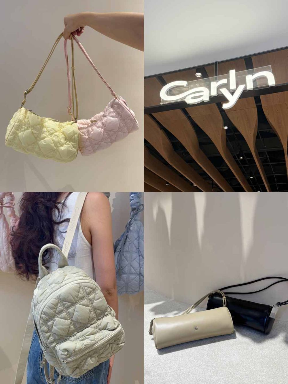 CARLYN 由創意總監李承喜於 2014 年創立於紐約,靈感來自大都會的摩登藝術氛圍,融合 40 餘年製包工藝,致力於打造「Timeless Bag」的永恆風格。品牌尚未進軍韓國市場前,便已深受眾多韓國女星喜愛,包括 Red Velvet、LE SSERAFIM、IVE、G-IDLE 等當紅偶像皆以私服與機場穿搭率先演繹CARLYN,掀起雲朵風暴。此次進駐大巨蛋旗艦店,更特別引進韓國全新2025 春夏系列包款,為台灣消費者帶來第一手韓系雲朵美學。未來也將持續性引進最新潮流、台灣獨家款式。
