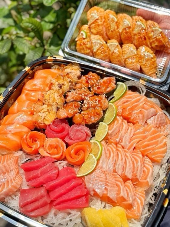 我們選了#鮭魚饗宴 裡面有鮭魚握壽司、鮭魚生魚片、旗魚生魚片、鮪魚生魚片、鮭魚子軍艦、照燒鮭魚 份量都給的超多👍