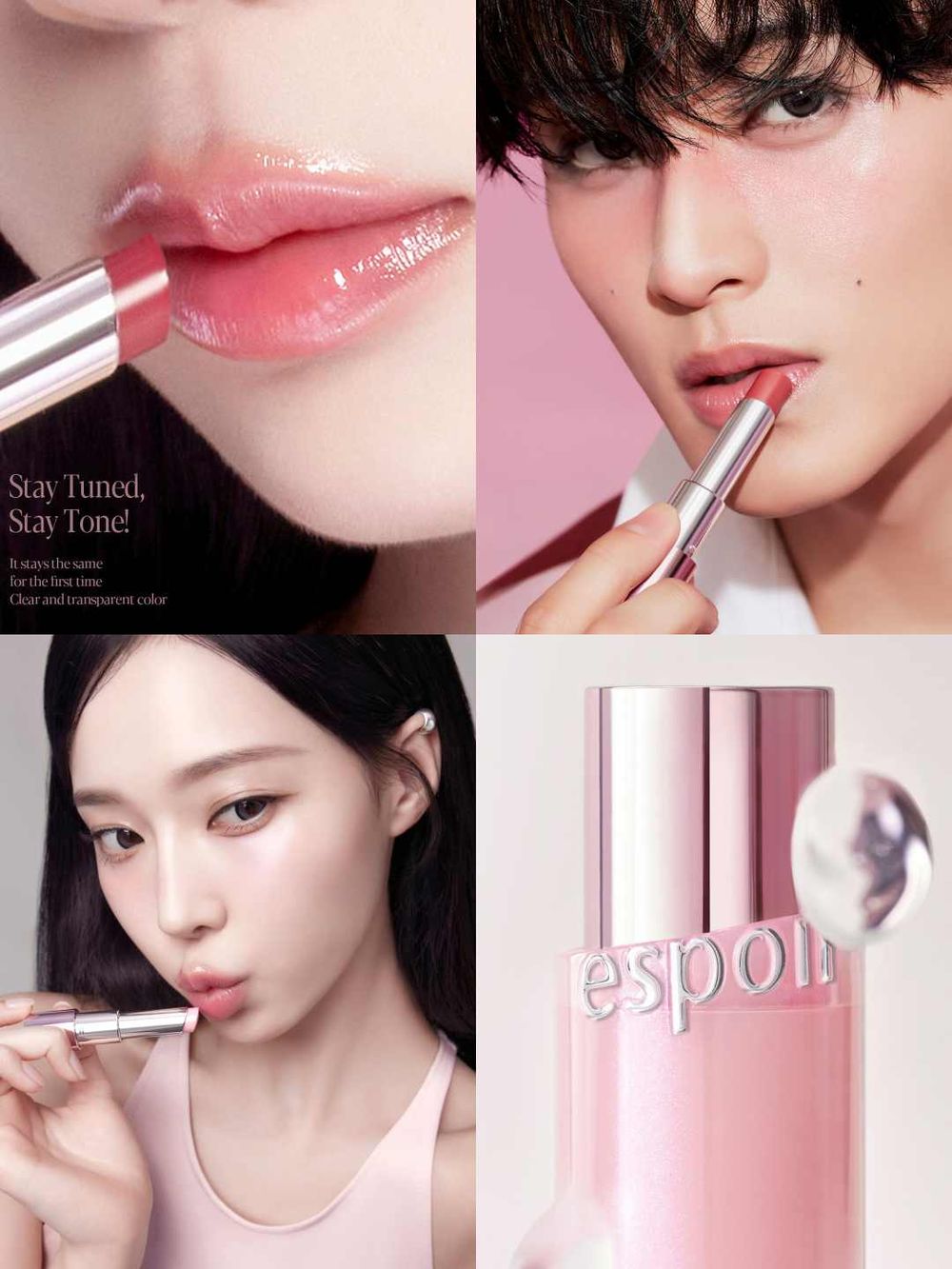 有鑒於市面上大多數的潤唇膏常常在完美色澤以及保濕力之間難以達成平衡,因此espoir想打造出一款能兼顧自然潤色以及持久保濕力,無論唇況能舒適地使用的潤唇膏。於是,Bare Glow Lip Balm就誕生了!這系列的宣傳畫報更是由espoir當家小花Winter以及最帥的MARK演繹,冬天的臉蛋在玫瑰色潤透點綴之下,看起來乾淨又精緻,就像精美高訂的洋娃娃一樣;而MARK則完美詮釋了何為奶凶的年下小奶狗!也因為這系列畫報的曝光,八成以上的人都是被這兩人所燒到的,原來無論男生、女生,擦起來都這麼好看!