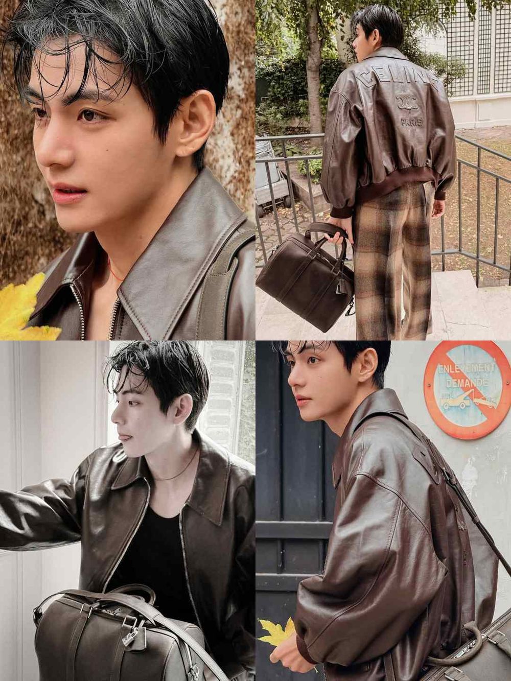 泰亨近日在IG曬出一組全新帥照,照片中的他以一身充滿秋冬氣息的造型登場。深棕色牛皮棒球外套內搭黑色上衣,外套以經典剪裁打造,寬鬆卻不失優雅,背後的CELINE字樣與TRIOMPHE LOGO更為整體增添標誌性亮點。下身搭配米棕色格紋長褲,這件被品牌歸類為「睡褲」的單品,被他演繹出時髦隨性的高級氛圍,果然不愧是金泰亨。整體造型完美體現CELINE特有的低調法式美學。