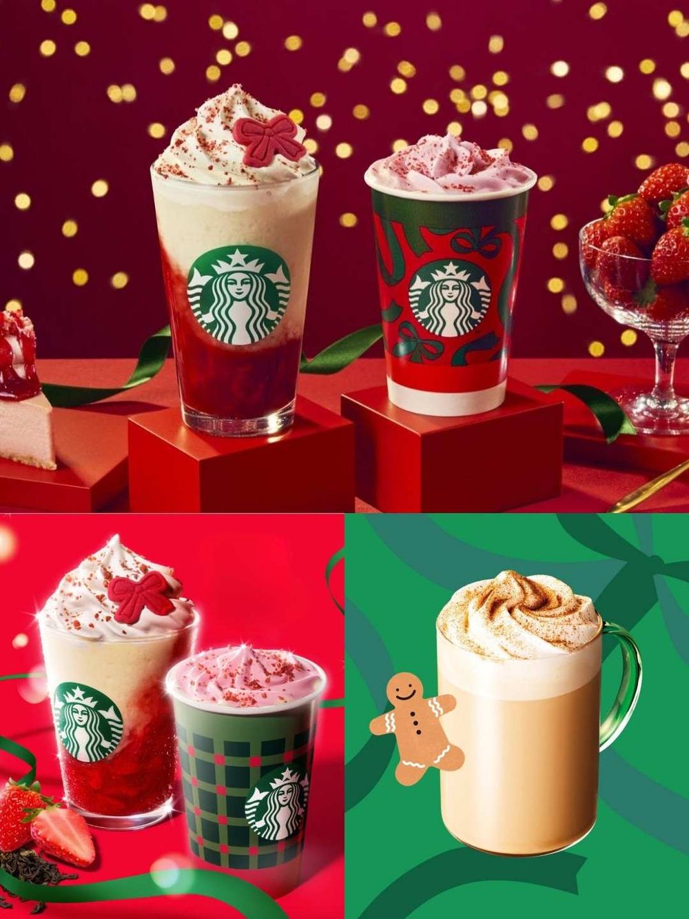 日本星巴克2025聖誕節限定飲品來了!「草莓綜合茶星冰樂」蝴蝶結餅乾裝飾太夢幻、還有薑餅拿鐵要喝!