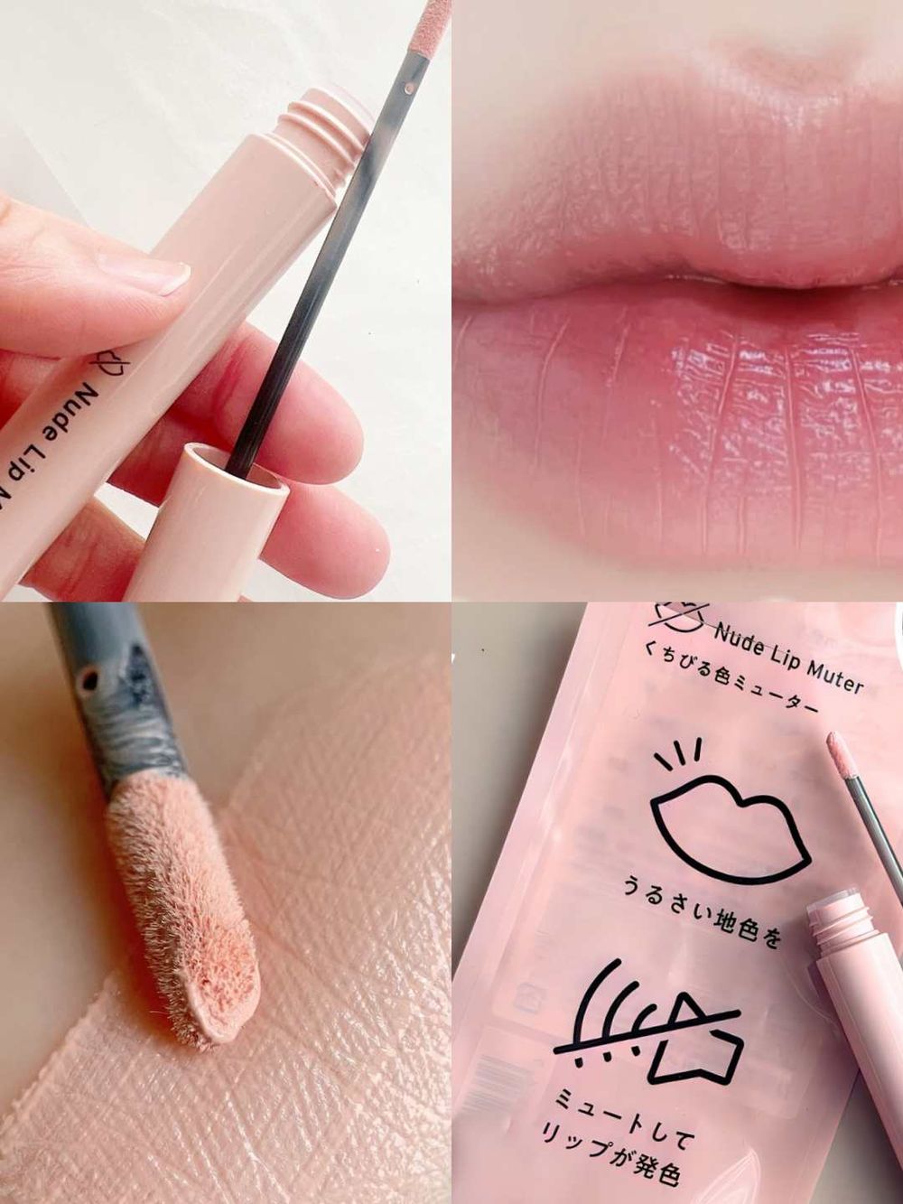 這款「Nude Lip Muter」是最近在日本討論度很高的唇打底產品,主打能降低唇色本身的存在感,讓後續疊上的唇膏顏色更乾淨,也更接近官方試色。質地帶有柔霧裸色感,上唇後不會像粉底或遮瑕那樣變得過白,也不會有粉感或厚重感,而是自然柔化原本的唇色。