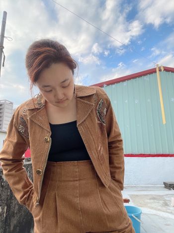 OOTD《生活日常》媽媽古董衣 / 卡其色高腰牛仔套裝