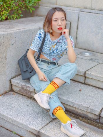 潮流、鮮豔的印花衣與短襪,超有個性的美式穿搭