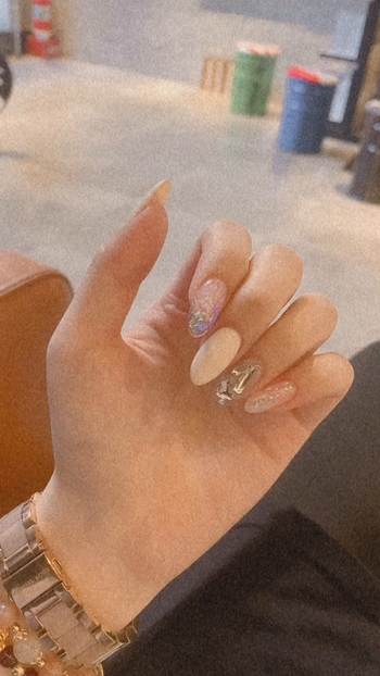 奶油白+爆閃鑽 水晶指甲🤍