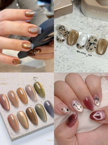 玻璃珠美甲正夯!秋冬「貓眼美甲」圖鑑,玻璃珠貓眼、愛心貓眼、亮片法式...,今年最流行摩卡棕+霧霾藍!